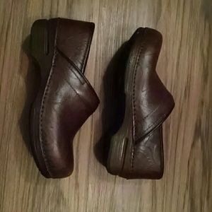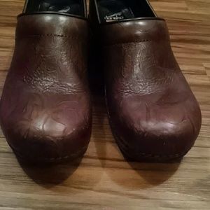 Dansko XP brown with floral design. Worn a few times. Few scratches on toe area, but not too noticeable. I don't wear scrubs anymore so sadly these won't get anymore wear. Very comfy. They're a size 40 but I typically wear a 9. Recommend trying on a pair to know what size you need. Danskos fit a little different.