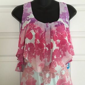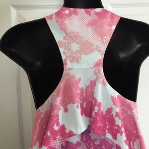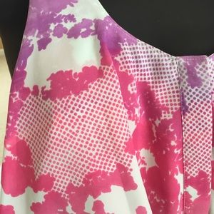 Cute dress features: pink purple white, 4 button down chest area, flutter over top, elastic waist, racer back design. Size XL can fit 12-14. New with tags. Note: seems like lipstick or make up from someone trying on in store on inner lining of dress. Not visible and I did not try to remove.