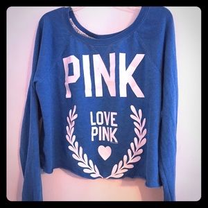 This is a gently worn cropped sweater by PINK. There is no cracking in the lettering and the bottom of the shirt is designed to look like a distressed cut off. 💥20% off the purchase of 2 items💥
