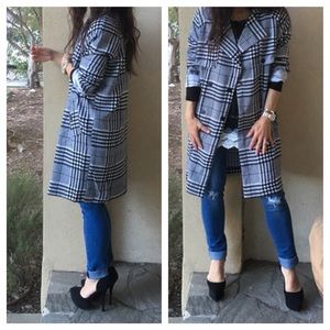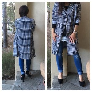 Hot style black and white chic trench coat new just in PLEASE Use the Poshmark new option you can purchase and it will give you the option to pick the size you want ( all sizes are available) BUNDLE and save 10% ( no trades price is firm unless bundled)