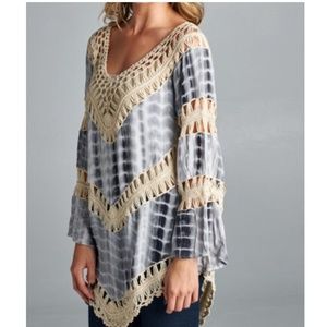 ✨ Tie Dye Boho Style Crochet Detail Tunic