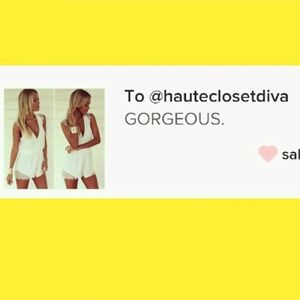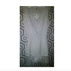 Beautiful white romper with lace detail at shoulders and outer corners of shorts. Comfortable and cute! NWOT