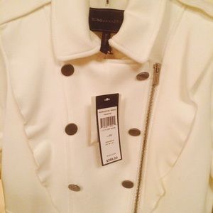 NWT.  Bcbg cream wool long coat.  Military style with feminine touch.