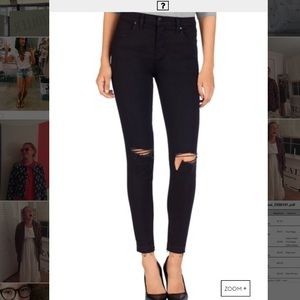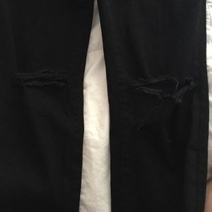 Black. Stretchy. run small!!!!! Fit like a 26/27 but marked as a 30! No longer have the tags attached.