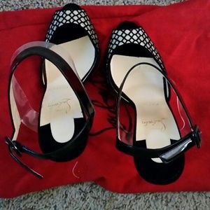 ***SOLD***FLASH SALE***Authentic Christian Louboutin "Just On" 120mm Platine Print/PVC heels. These are size Eur 41. These are practically new; almost no show of wear to sole and beautiful on. I adore these but they are too big for me. No matter how hard I tried I couldn't keep strap from falling down on back of my feet. Comes with dust bag, no box!