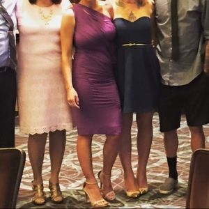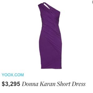 100% authentic Purplish pink gorgeous Donna Karan black label. Wiggle knee length dress. Amazing high quality non pilling fabric. (Silk blend) Grecian off shoulder style. Currently for sale online for $3,295. Get it for less than 50% off here! Worn once for a couple hours, tags still attached. Definitely closer to color in first picture. Fits a small or med with or without curves. Very stretchy fabric.