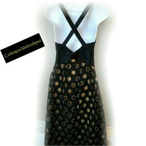 Beautiful laser cut polka dot retro halter dress by Catherine Malandrino. Side zip. Crisscross back. 1 circle has been repaired but completely unnoticeable while wearimg. Flawless otherwise.