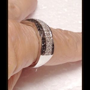 NEW Genuine Black and White Diamonds. Ring is set in Platinum Overlay .925 Sterling Silver (Size 9) TDiaWt 0.33 cts TGW 0.33 CTs. Highly polished, substantial Sterling with a very subtle design running on each side of the diamonds. Understated elegance at its best. FINAL PRICE NO OFFERS unless bundled