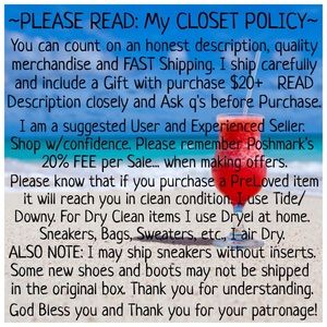 @greenshoes0 Hi Paula💞💖Goodness I’m sorry you had to experience such UN-kindness. I haven’t dealt with a lot of that on Poshmark however I know this world is full of people who are in love with themselves. It’s sad that they really don’t care about common courtesy let alone a hurting person... which there are soooo many!! God bless your SweeT heart for others and for not being rude right back... it is sure tempting some times!! Thanks for sharing. I would suggest not buying from her☹️