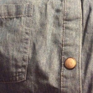 Excellent condition. There are no stains or tears. Embroidered floral design on the shoulder. This comes from a smoke free home. 100% cotton. Country gal. Cowgirl. Horseback equestrian rider. Clogging dance. Front pockets. Ties at the waist. Yee haw. Dance. Ho down. Sweet. Feminine. Funky. Wear with jeans, boots, and a leather belt. No labels. Tops D