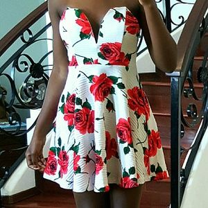 SOLD | Plunging Rose Print Skater Dress