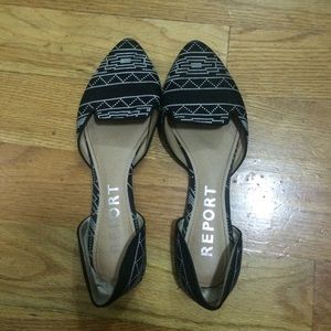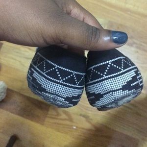 Flats with a cute print and triangular shape in the front. Very comfy but became too big for me.