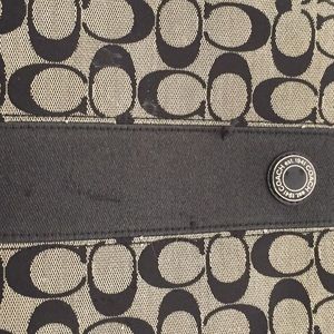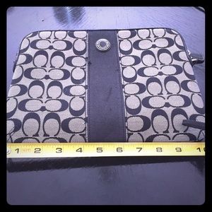 Lightly used Tablet case has 3 areas of discernible use: 1. The front, center panel stitching is loosening up- threads could easily be trimmed. 2. Two of the signature "c" on the fabric have light, white stains near the panel. 3. On the reverse side, one "c" has a small, brown coffee stain. It's mostly been removed. All of these are shown and can be easily disguised:) much love, AvedisTouch
