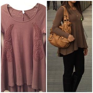 This swing cut thermal is super soft and stretchy with a faded wash, Hi-Lo hem, and Victorian scroll appliqué. FP X- From Free People, with love. Inspired by finding beauty in vintage details, embroidery, lace, and heirloom embellishment. 59% Cotton. 39% Polyester. 2% Spandex. In This Pic: Model's Wearing Size Small. Measurements: Bust: 30” Length: 26 1/2” Sleeve Length (from neck): 28 1/2”. Excellent condition, worn 3x. Offers welcome, no lowballing please.