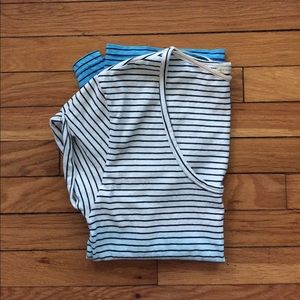 Striped scoop-neck Tee with hombre coloring. You can almost hear the waves when you wear it.