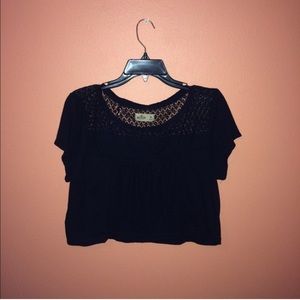 navy blue hollister crop top, lace in the front and shoulder parts and in the back shoulder part