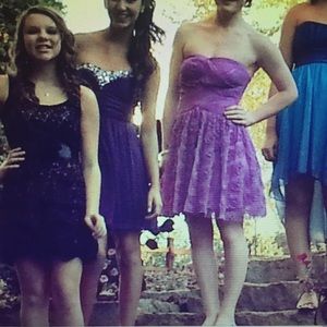 This dress is in stand new condition and only worn once! It's a beautiful lilac color with rose pattern tulle detail! It has a zip up back and has bra cups in the chest! OFFERS WELCOME!!