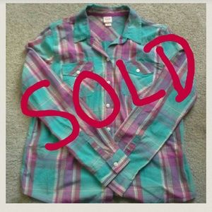 SOLD!!! Bright Purple and Blue Plaid Button Down