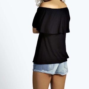 💙Adorable Off-Shoulder Navy Viscose Top💙 This material is FABULOUS! Super Soft, Hangs on the body in a flattering and comfy way and stretchy. Like your favorite t-shirt! Also washes extremely well and gets softer with each wash. Viscose-95% Elastane-5%