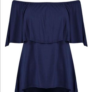 ✋🏻SOLD🎉HOST PICK🎉Off-Shoulder Navy Viscose Top