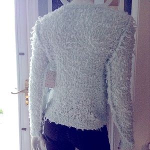 New with tags. Has unique rag yarn styling with reverse seaming detail. Very light mint green. 51% acrylic, 25% wool, 25% nylon. Hand wash cold.