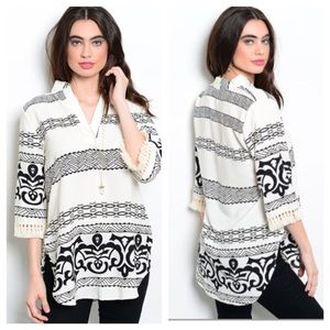 LAST ONE! B&W fringe blouse