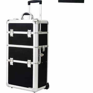 Professional wheeled case, multifunctional for many professions yet ideal for hair and or make up case. This is a great traveling case it is really universal so you can put many different items in it. Color/print black hole- 3 sections with removable dividers- In-line skate wheels- 27.5"H x 14.5"W x 9.5"D- 4 inch handle drop- Made in USA