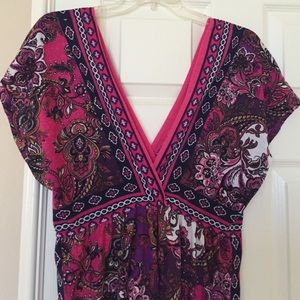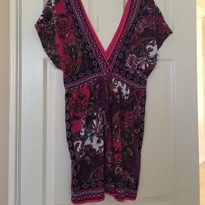 V neck Colorful, very soft tunic/dress/cover-up. Worn once. No holes or stains.