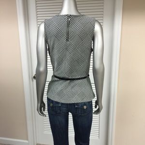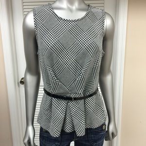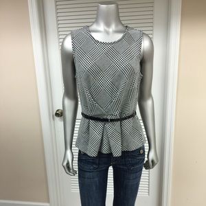 Soft & Chic Liz Claiborne Black & White Peplum Top with Gathered Waist, Black Belt & Back Zipper! PERFECT CONDITION! 81% Polyester 18% Rayon 1% Spandex
