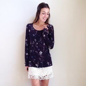 offers welcome size medium floral long sleeve top. slight signs of wear in material, priced accordingly. •560018•