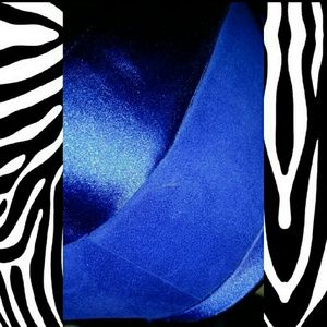 Gorgeous Bebe Tristan Pump*Alluring, bold & beautiful blue satin upper*Accents of soft suede trim the 1 3/4 inch platform and give a fresh fall finish to this 5 inch heel*NEVER WORN (ONLY TRIED ON)* ORIGINAL BOX INCLUDED* If you look extremely hard you'll discover 3 miniscule marks 2 of which are on the left heel (can be seen in the 1st photo of the collage, other photos are of the 3rd mark- took multiple shots to try and capture mark). Mild glue smell from whatever they used at the factory