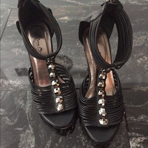 Beautiful high heels with straps and zipper on the back! Size 5.5. Worn a few times but still in great condition! The pictures show more of the wear and tear them looking at them in real life! Any questions just ask!