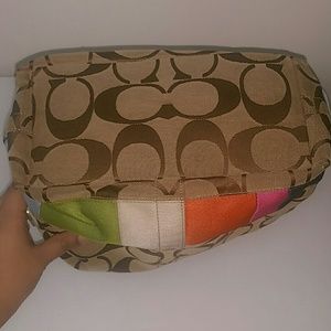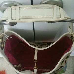 This was my first designer bag I treat it like my baby. I have never found a bag like this mad anyways not even from couch it has just the right amount of space. The inside is clean. No major stains. Light wear on the bottom. This purse made my summer outfits look amazing. It always got complaints because eitnis so unique with all that color. And the off white leather still look amazing!!! Please feel free to make an offer