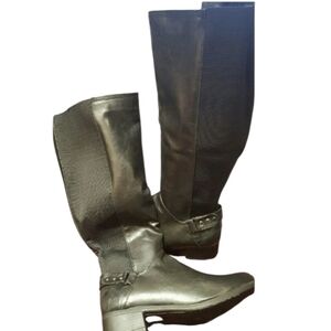 Black Vegan Leather Side Strrtch Insert 1-1/2" Heel 20-1/2" L NIB