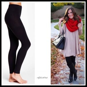 BLACK FLEECE LINED LEGGINGS FOOTLESS TIGHTS