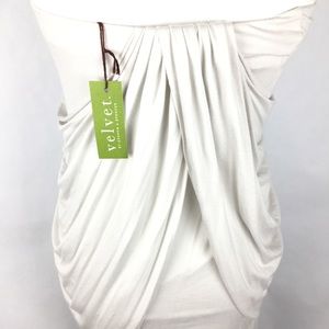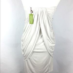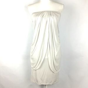 Strapless dress by Velvet with beautiful front and back draping. Very light gray in color. Never worn.
