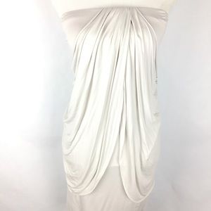 Light gray Velvet (brand) strapless, draped dress.
