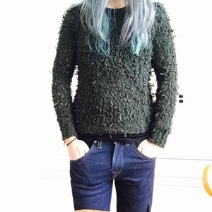 Cozy pullover sweater in a shaggy knit. Soft wool blend in dark forest green. Crew neck neckline. This item is brand new without tags, NEVER been used! Retails for $98!
