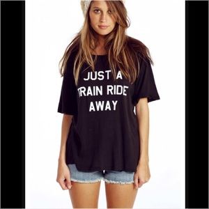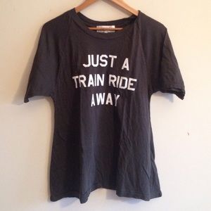 Just a train ride away. The official long distance friendship tee featuring a roomy, relaxed fit in a soft and lightweight heather jersey knit. Crewneck. Short sleeves. Runs big.