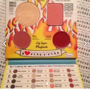 Brand new never even swached. !! Opened once to take picture !!! Awesome makeup brand !! By Balm cosmetics !! This palette comes with eye shadow,powder,blush,lip.gloss and retails for over )$40.00.