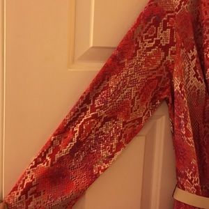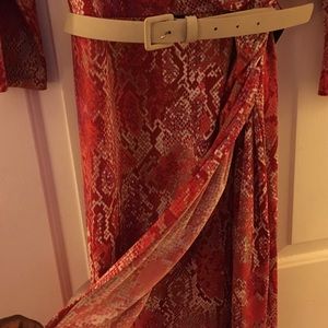 Hot!! Red/patterned faux wrap belted dress perfect for any occasion. Form fitting without being clingy. Sensible offers will be considered. Priced to sell!!