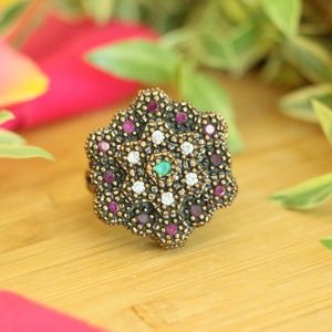 Sterling Silver Ruby, Emerald and Topaz S 7.25