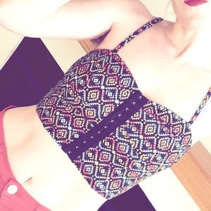 💋All items shipped carefully w/freebie!Strappy crop top with hook closure "buttons" along the front hidden by black panel. Let a few down to show some cleavage or keep it buttoned up. Wear with high waisted flare jeans for a retro look or pair with shorts and flip flops and hit the beach. Comfy, stretchy. Worn literally once.///no trades pls//top 10% seller///130+ sales &5.0/5 rating; Open to reasonable offers😀