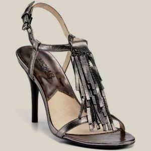 Slate Metallic Fringed Sandals