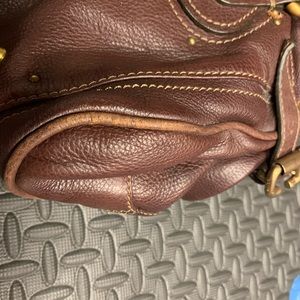 Used but always stored In dust bag. Constructed with very high quality leather. Dark brown. 13" wide 7" tall 6" deep.