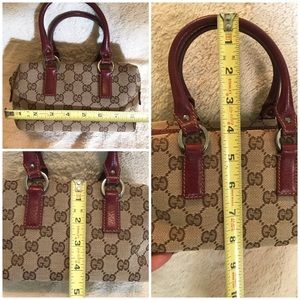 👑✅PRICE FIRM✅NO OFFERS SUPER SALE!! AUTHENTIC Gucci Mini Hand Bag. RARE to find in this size and style🔥Measurements in photos. Red leather trim. Silver tone hardware. Preloved used condition. Monogram canvas with no flaws. Interior with minor white residue spots. Some darkening of the handles from use. Made in Italy. Does NOT come with tassel/charms. No dust bag. ❤️BUNDLE 3 items or more for additional 5% off❤️ Please review all photos and video before purchasing. Buy as is. All sales final! No returns accepted on this item purchase