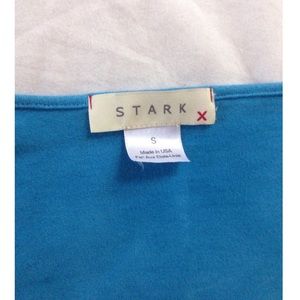 By Starkx. Woven linen with cotton-lycra knit insets. Hi-lo hem. Pullover styling. Machine wash. USA. Size S