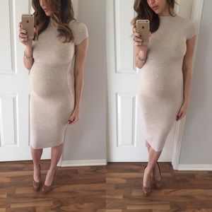 • Item Information: Such a elegant beautiful looking dress on. Double lined non-sheer fabric, short sleeves, high neckline and a overall flattering fit. Oatmeal marbled look. 95% viscose 5% spandex. Medium: 41.5" long • 14" chest • 13" waist • 14" hips * Runs on the smaller side *