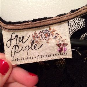 Sheer black "miles of lace" dress by Free People. Size small, needs some sort of slip underneath. Gently loved condition, no flaws noted when I inspected it.