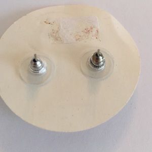 Never worn and in perfect condition, these button earrings are handmade and fabric covered. Super cute!